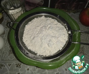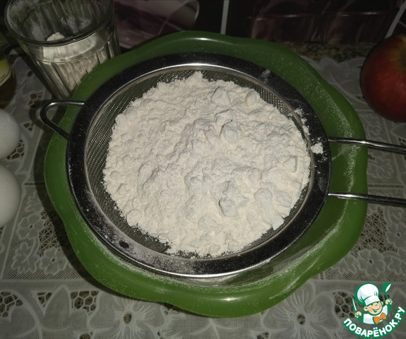 Просеять пшеничную и овсяную муку с разрыхлителем. Перемешать.