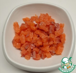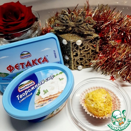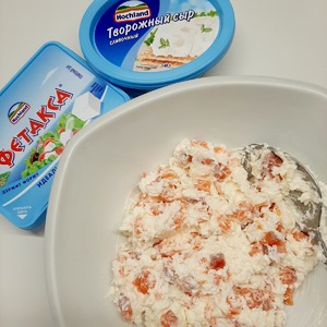 • Смешать все, кроме желтка. Добавить творожный сыр.