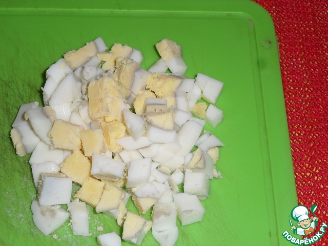 Подготовим продукты. Яйцо отвариваем в подсоленной воде, остужаем и очищаем.