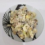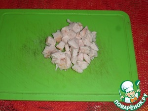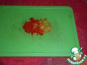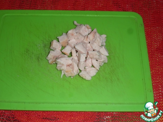 Нарезанные ингредиенты выкладываем в чашку. Добавляем приготовленную заправку.