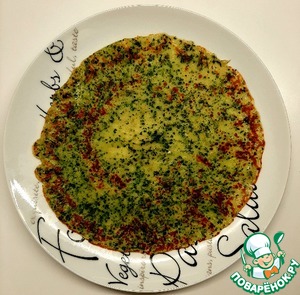 Выпекать на смазанной маслом, хорошо нагретой сковороде. Блинчики не рвутся, хорошо переворачиваются. У меня получилось 11 шт.