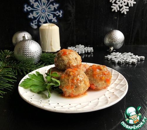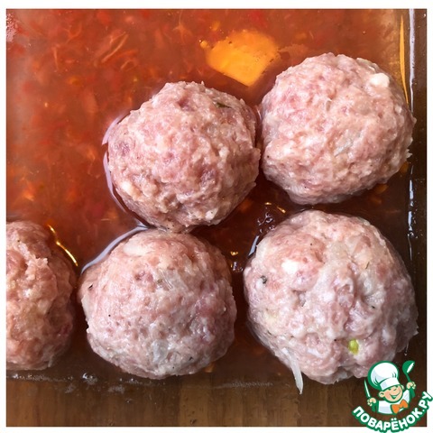 Выложить фрикадельки в форму для запекания в томатную заливку и отправить в духовку минут на 30-35 при 190 гр.