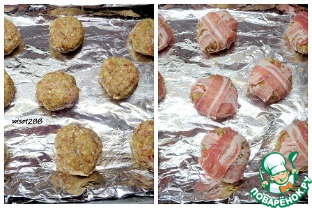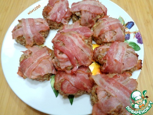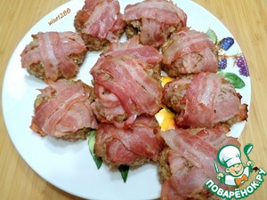 Рецепт «Тефтели в копченом беконе с начинкой»: