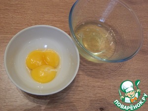 Разделим яйца на желтки и белки. Одно яйцо попалось двухжелтковое.