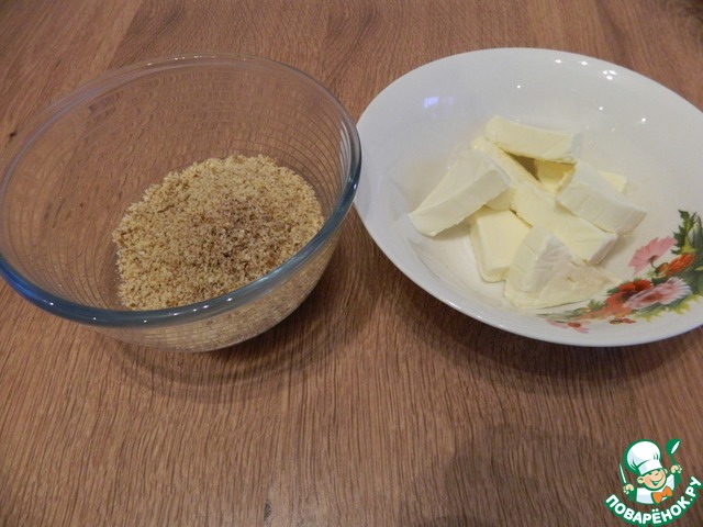 Сделаем крем из грецких орехов и плавленного сливочного сыра "Hochland"