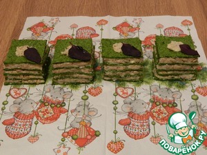 Вот такие полоски получились. Если крем плохо намазывается, можно добавить пару ложек майонеза.