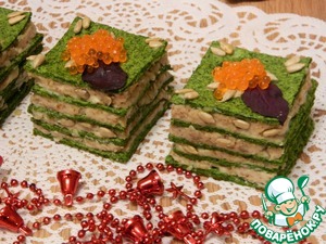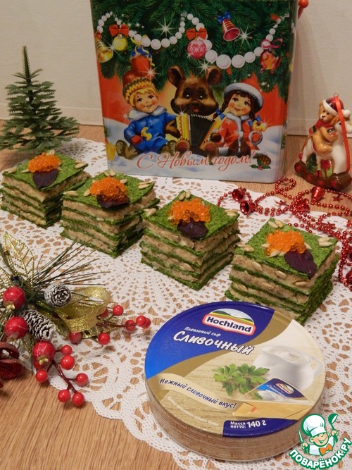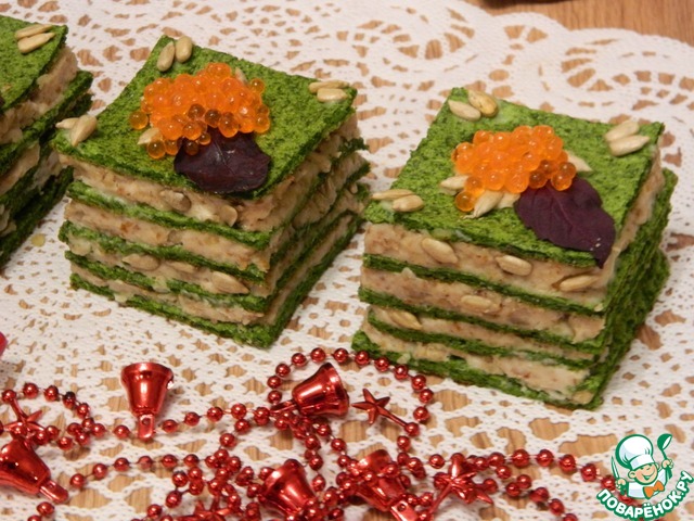 На Новогодний стол предлагаю свой вариант закусочных пирожных со шпинатом и сырным кремом с добавками из орехов и семен подсолнечника.