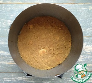 Полученную массу распределить в разъёмной форме для выпечки (диаметр 18 см), застеленной фольгой.