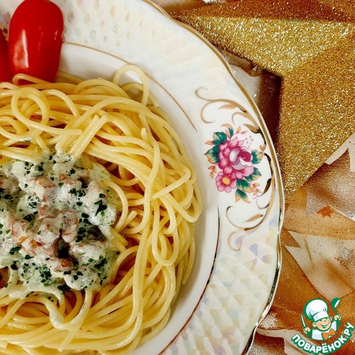 Рецепт «Сливочная паста с беконом и шпинатом»: