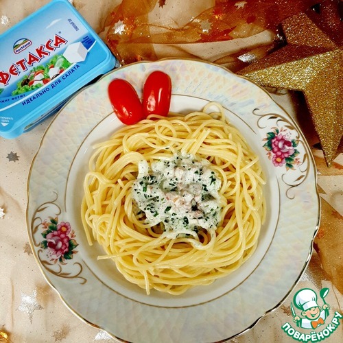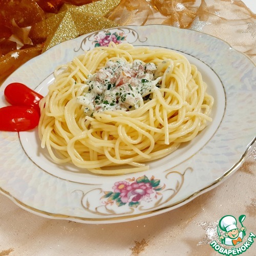 На тарелку выложить макаронные изделия, полить соусом и наслаждаться вкусной и ароматной пастой!