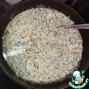 К сливками и шпинату добавить плавленый сыр Фетакса. Взбить.