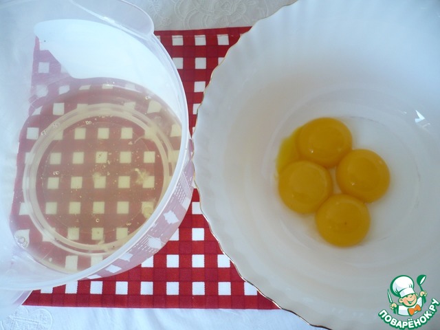 Для приготовления бисквита берем яйца и отделяем белки от желтков в две разные миски. Белки отставляем в сторону.