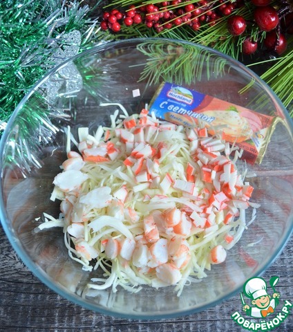 Рецепт «Капустный салат с морепродуктами и сыром»: