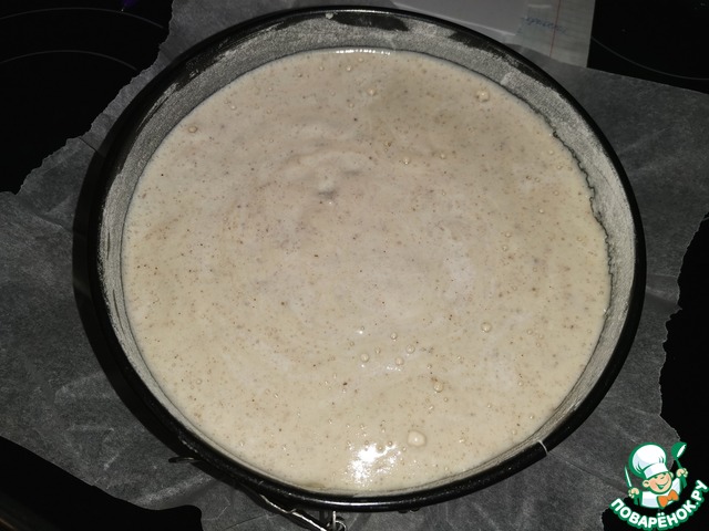 Будущую запеканку выложить в смазанную маслом и присыпанную мукой форму d=18см.