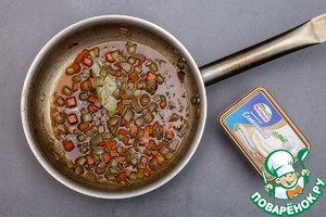 • Крупно нарезать кубиком лук, морковь и стебель сельдерея. На оливковом масле обжарить телячью голень до румяного цвета с двух сторон, посолить и поперчить по вкусу.