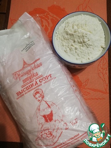 Просеять муку. Я использую муку ТМ "Французская штучка" высшего сорта. Выпечка получается просто бесподобной.