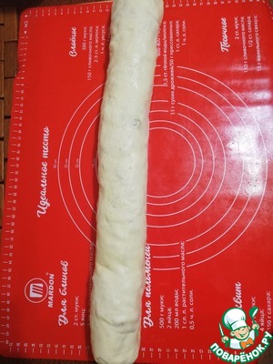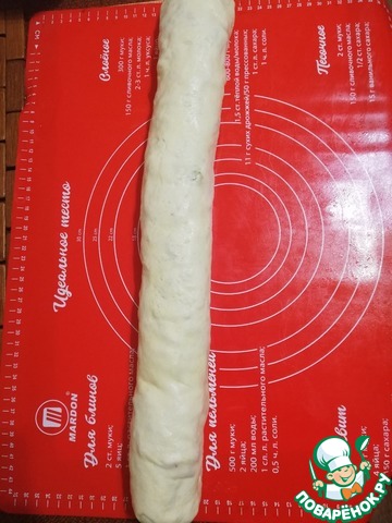 Скатать тесто в плотный рулет. Хорошо прижать по всей поверхности. Края защипать.