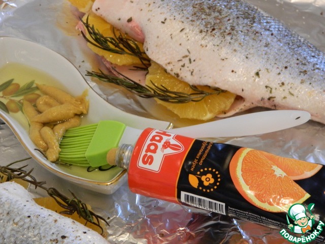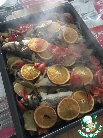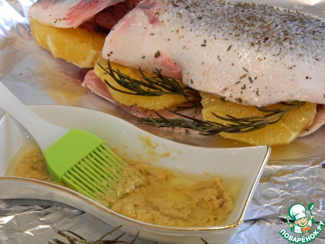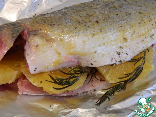 Рецепт «Сибас в духовке фаршированный апельсинами»:
