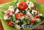 А теперь собственно соус:2 ст. л майонеза,2 ст. уксуса,1 ст. л горчицы 0.5 ч. л сахара и зубчик чеснока выдавленный через чеснокодавку, смешиваем-готово. Заливаем салат.