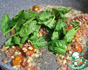 В конце добавляем шпинат и чёрный перец, обжариваем ещё пару минут.