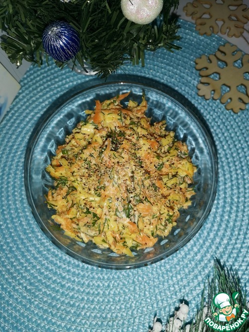 С удовольствием делюсь с Вами, поварята, рецептом простого и вкусного салатика, на приготовление которого уходят считанные минуты, процесс прост до невозможности. Для праздничного стола, скорее всего, не подойдёт, хотя... если начинить этим салатом тарталетки или волованы... Прошу к столу!