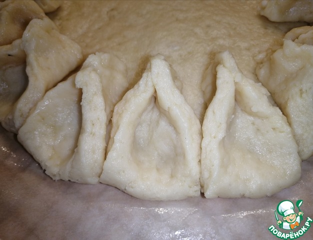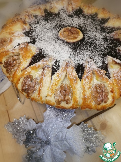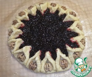 В середину выкладываем повидлом или джем и распребеляем по пирогу.