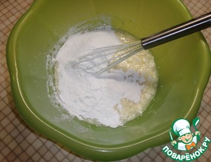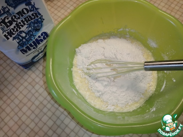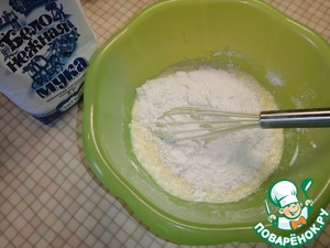 Постепенно добавить просеянную муку, разрыхлитель и ванилин. Замесить тесто.
