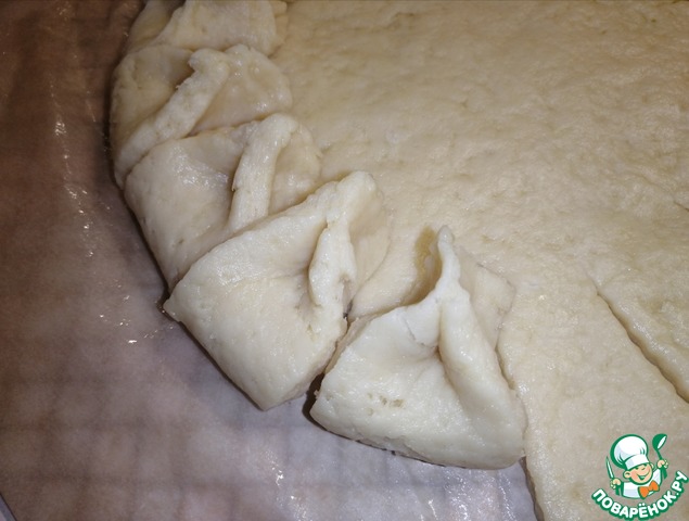 На стол растелить пергаментную бумагу, чтобы хватило на противень.