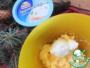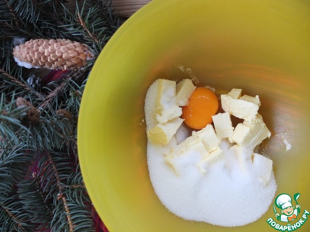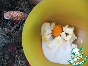 Размягченное сливочное масло, желток, сахар и ванильный сахар смешиваем. -