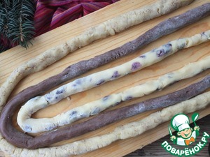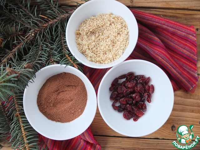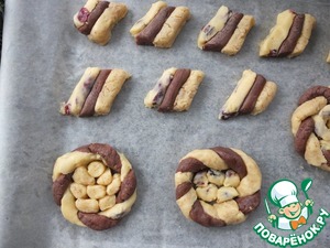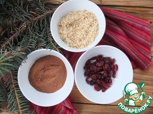 Вмешиваем в одну часть орехи, во вторую - клюкву, в третью - какао. -
