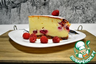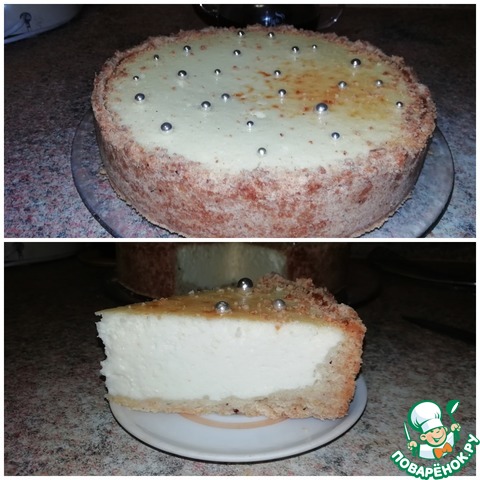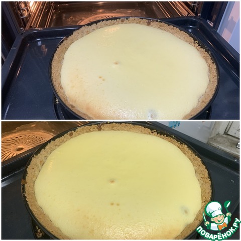 Затем добавить заливку. Форму поместить в разогретую до 170-180С духовку для выпекания. Хочу обратить внимание, температурный режим и время выпекания чизкейка каждый выбирает самостоятельно, ориентируясь на возможности своей духовки. Чизкейк готов, когда середина чуть-чуть подрагивает при толчке рукой формы.