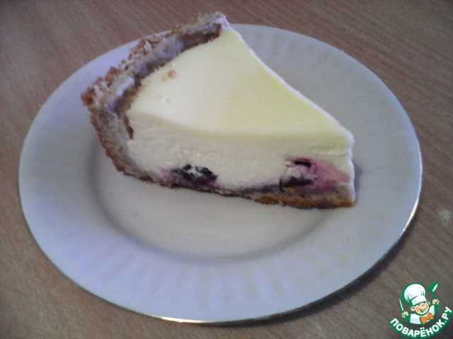 Далее форму с чизкейком поставить в прохладное место и дать полностью остыть, затем снять форму. При подаче чизкейк можно посыпать сахарной пудрой по желанию и украсить свежими ягодами голубики.