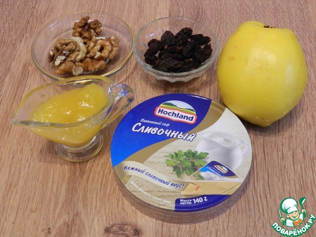 Ингредиенты для «Айва, запеченая с сыром, изюмом, орехами»: