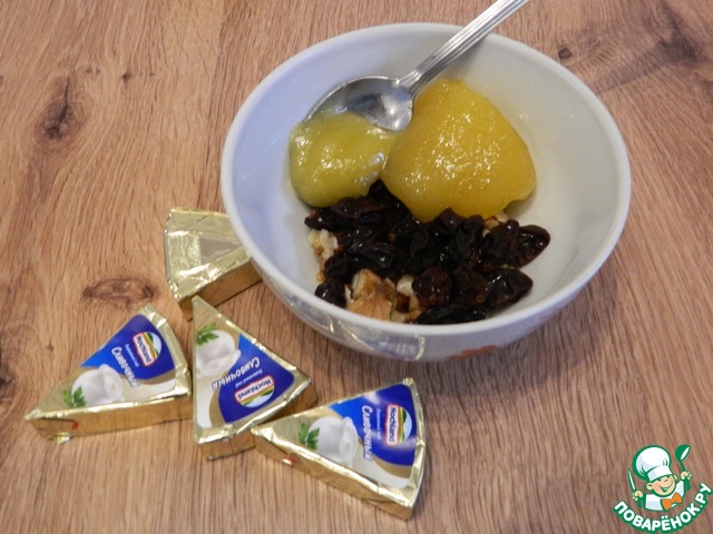 Рецепт «Айва, запеченая с сыром, изюмом, орехами»: