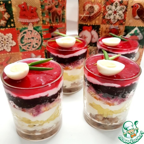 Рецепт «Сельдь под шубой с новой заправкой»: