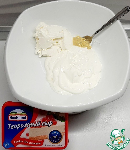 Для заправки смешиваем сыр, сметану, горчицу, соль по вкусу.