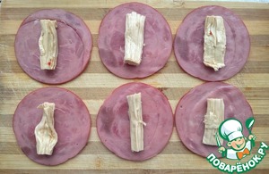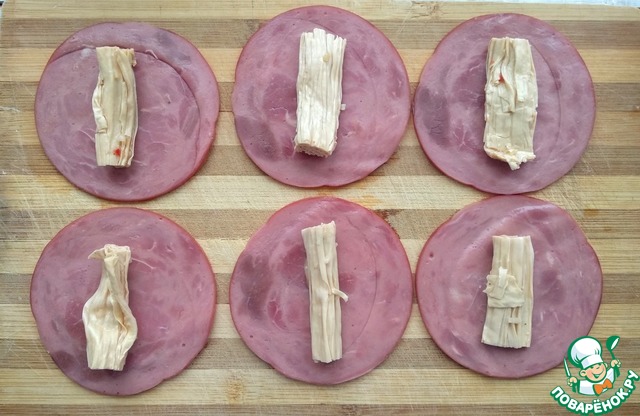 Сверху половинки треугольников плавленного сыра.