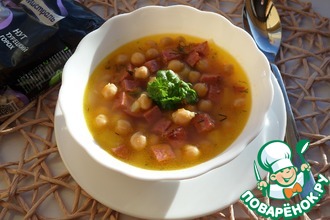 • Суп разлить по тарелкам, добавить сливочный сыр, сверху бекон, украсить зеленью.