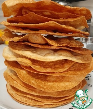 Достать тесто из холодильника, разделить на кусочки. Я раскатывала и сразу вырезала круги, обрезки тоже раскатывала. У меня получилось 18 коржей. Три коржа я после выпечки измельчила для обсыпки.