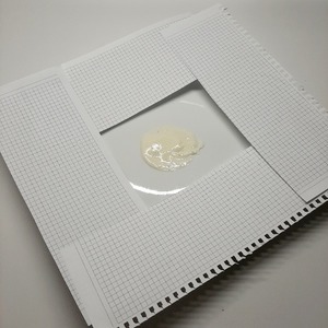 Блюдо застрелить четырьмя полосками бумаги. В центр положить немного крема, чтобы первый корж не скользил.