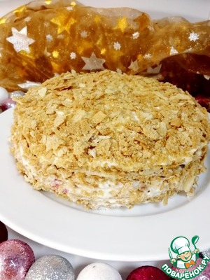 Традиционный мой новогодний "Наполеон" в новой вариации. Постные коржи, вкуснейший сливочный крем с творожным сыром и кислинка брусники. Получилось очень вкусно и празднично!