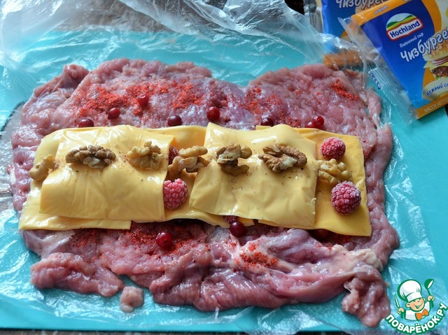 Рецепт «Рулет из индейки с сыром и ягодами»: