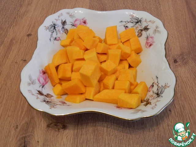 Приготовим необходимые продукты. Очистим тыкву и яблоки от шкурки.