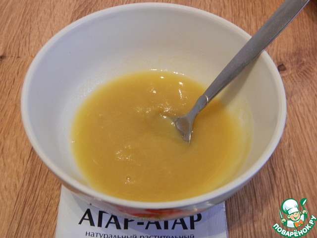 В это время к агар-агару добавим вторую меньшую часть сока.