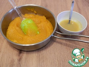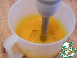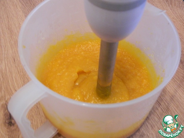 Остывшую яблочно -тыквенную массу измельчим блендером до однородного состояния.