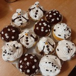 Берем глазурь и размазываем ее по печенью как на фото, прикрепляем голову снеговика.