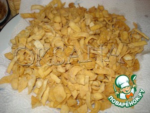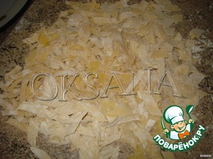 Когда раскатываем кусочки теста (толщина 2-3 мл.) на столе, потом делим их на такие части, чтобы удобно было резать.
