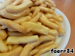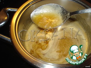 Когда сироп готов - выливаем его в наши поджаренные кусочки теста и хорошо перемешиваем ( сироп должен повсюду распределиться).