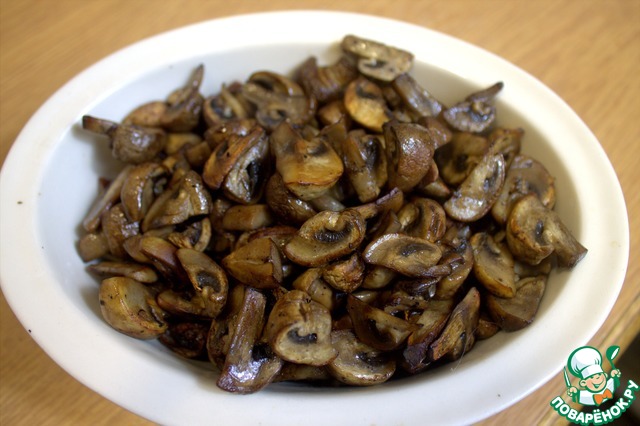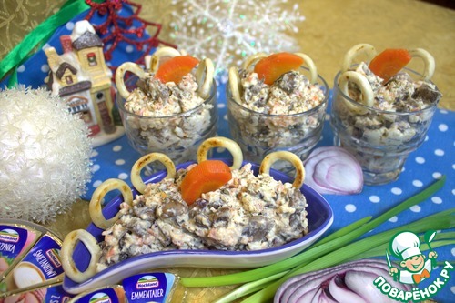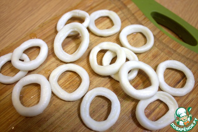 Изначально хотела добавить кальмары в салат, но их при разморозке оказалось очень мало, будут служить украшением.