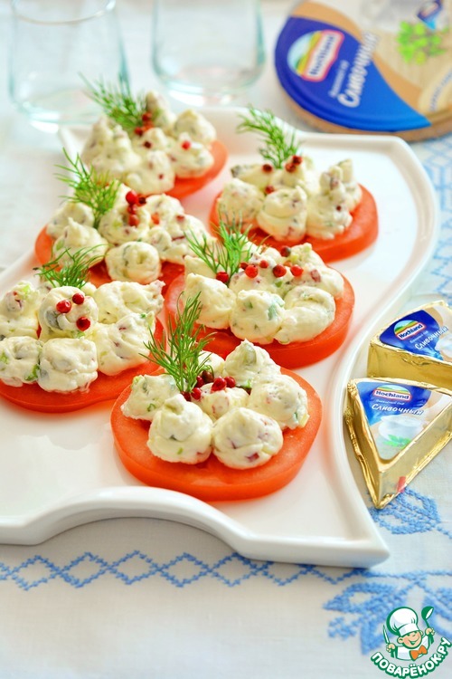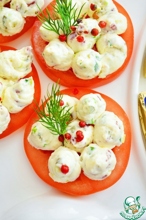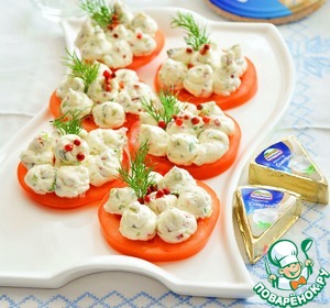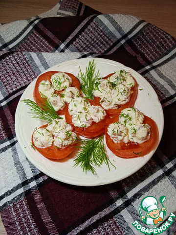 Рецепт «Закуска с плавленым сыром на помидорах»: